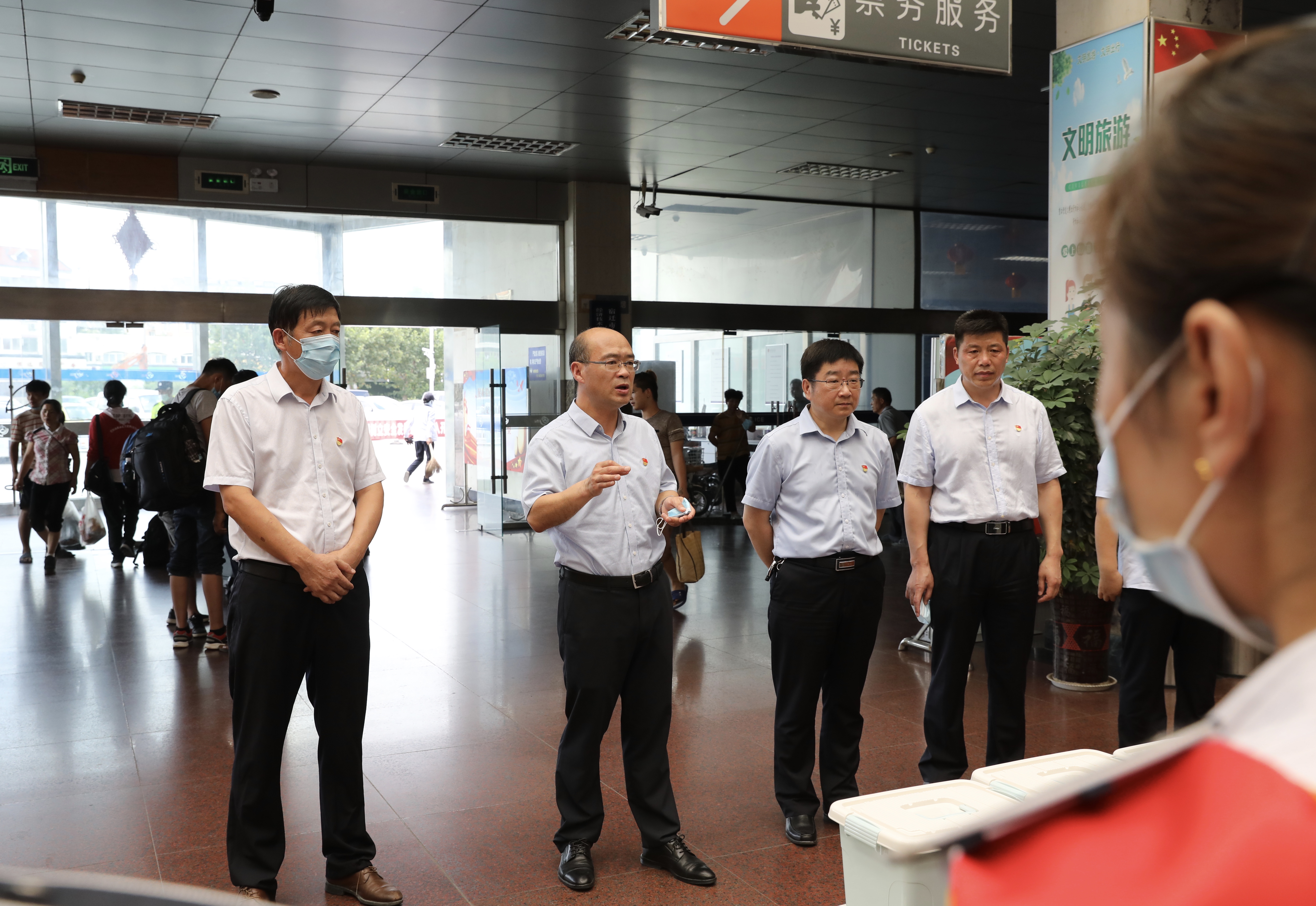 活動(dòng)現(xiàn)場(chǎng),集團(tuán)機(jī)關(guān)黨支部黨員為劉靜服務(wù)組全體成員和部分一線駕駛員送上夏日清涼用品。同時(shí),集團(tuán)機(jī)關(guān)黨支部與宿汽集團(tuán)黨總支開展文明勸導(dǎo)服務(wù),為旅客提供出行咨詢、協(xié)助旅客使用智能一體取票機(jī)、搬運(yùn)大件行李、引導(dǎo)旅客購(gòu)票、乘車、安檢等服務(wù),充分發(fā)揮出黨員干部的先鋒模范帶頭作用。