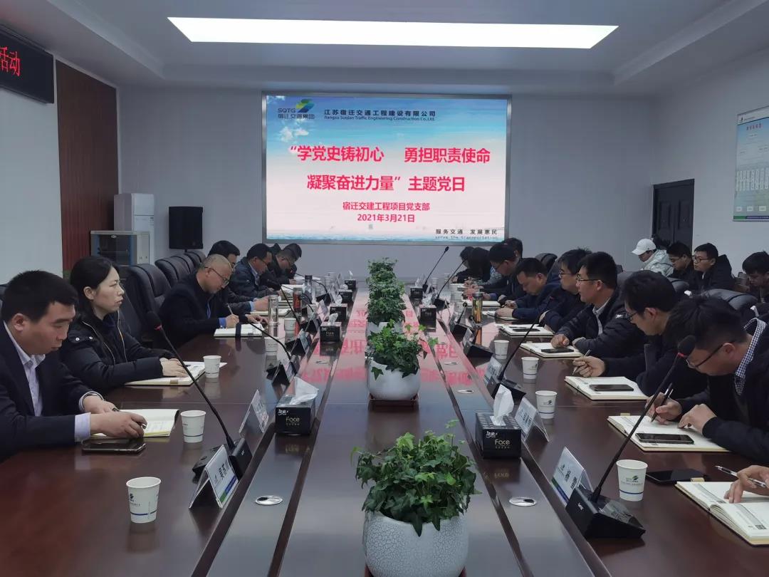 3月21日,宿遷交建工程項(xiàng)目黨支部在省道268項(xiàng)目部會(huì)議室召開“學(xué)黨史鑄初心 勇?lián)氊?zé)使命 凝聚奮進(jìn)力量”主題黨日活動(dòng)。