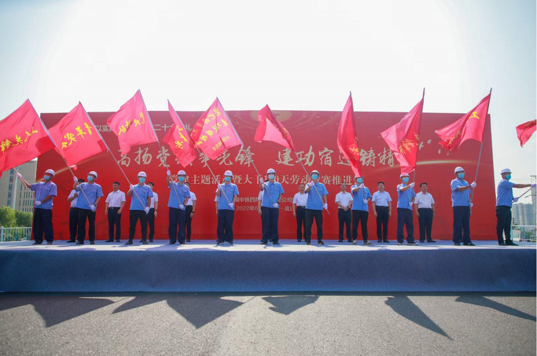 在北京路快速化改造工程1標(biāo)段施工現(xiàn)場開展了“高揚黨旗爭先鋒·建功宿遷鑄精品”黨建主題活動暨大干100天勞動競賽推進會,為項目建設(shè)者鼓勁打氣,緊緊將建設(shè)者的心凝聚在一起。該工程主線高架橋施工基本完成,比計劃提前了20多天。