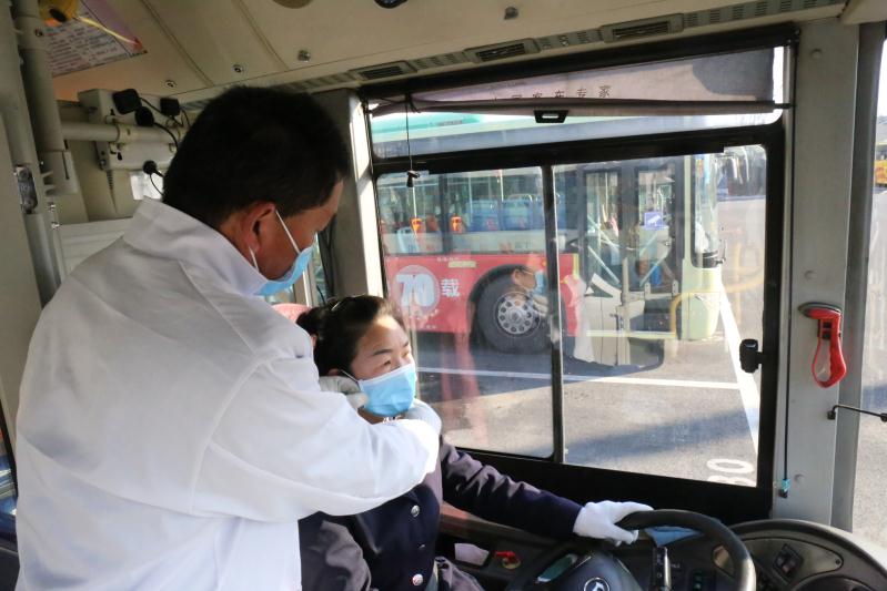 施俊永從早忙到晚,每天在完成自己的營運(yùn)任務(wù)后就換上隔離服,帶上防護(hù)帽,對每輛進(jìn)場的公交車輛逐一擦拭扶手、欄桿、座椅,噴灑消毒水,擦拭地板,確保車輛消毒不留死角。每當(dāng)劉玉榮營運(yùn)結(jié)束回到站內(nèi),看著丈夫一遍遍擦拭扶手、噴灑地板的身影就感到心疼;而施俊永也擔(dān)心妻子的自身防護(hù),每次在為劉玉榮的車輛消毒時,總要幫她整理一下口罩,反復(fù)叮囑幾句,小小的公交車廂成了夫妻兩人傳遞愛與溫暖的紐帶。他們就這樣默默堅(jiān)守著自己的工作崗位,迎來送往,無私奉獻(xiàn),奮戰(zhàn)在服務(wù)乘客和抗擊疫情的公交第一線。