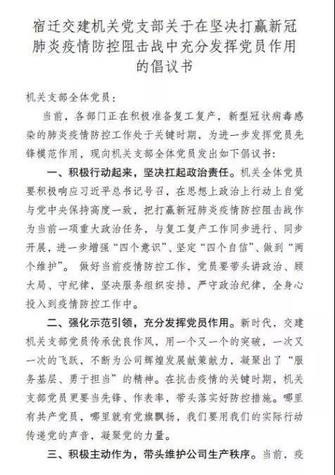 會(huì)上,機(jī)關(guān)支部發(fā)出《關(guān)于在堅(jiān)決打贏新冠肺炎疫情防控阻擊戰(zhàn)中充分發(fā)揮黨員作用的倡議書》,號(hào)召支部全體黨員要積極行動(dòng)起來(lái),堅(jiān)決扛起政治責(zé)任;要強(qiáng)化示范引領(lǐng),充分發(fā)揮黨員作用;要積極主動(dòng)作為,帶頭維護(hù)公司生產(chǎn)秩序。