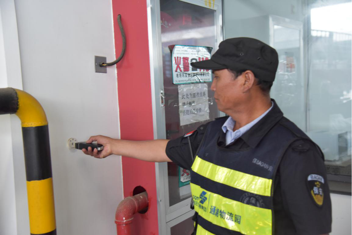 每天上午8:30,園區(qū)安全員到達“現(xiàn)場”,依次對倉儲區(qū)消防安全通道進行檢查,對零擔(dān)區(qū)貨物車輛進行巡查,對辦公樓消防器材進行檢測。檢查完一處后,安全員均需在電子打卡點進行打卡,并對安全巡檢情況進行登記備案,確保安全檢查全覆蓋。江蘇通湖物流園在園區(qū)設(shè)置了75個電子打卡點,通過安全員現(xiàn)場“打卡”的方式,排查園區(qū)每個版塊的安全生產(chǎn)情況。