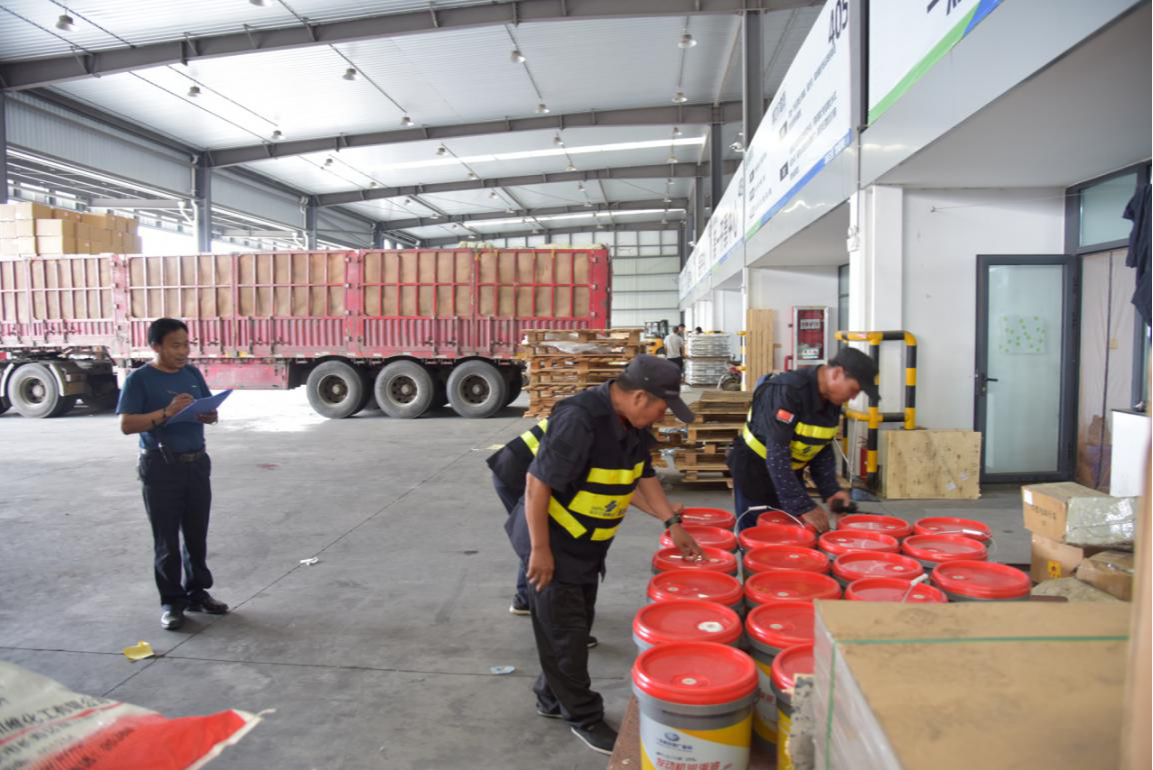 園區(qū)工作人員對零擔(dān)區(qū)貨物進行檢查