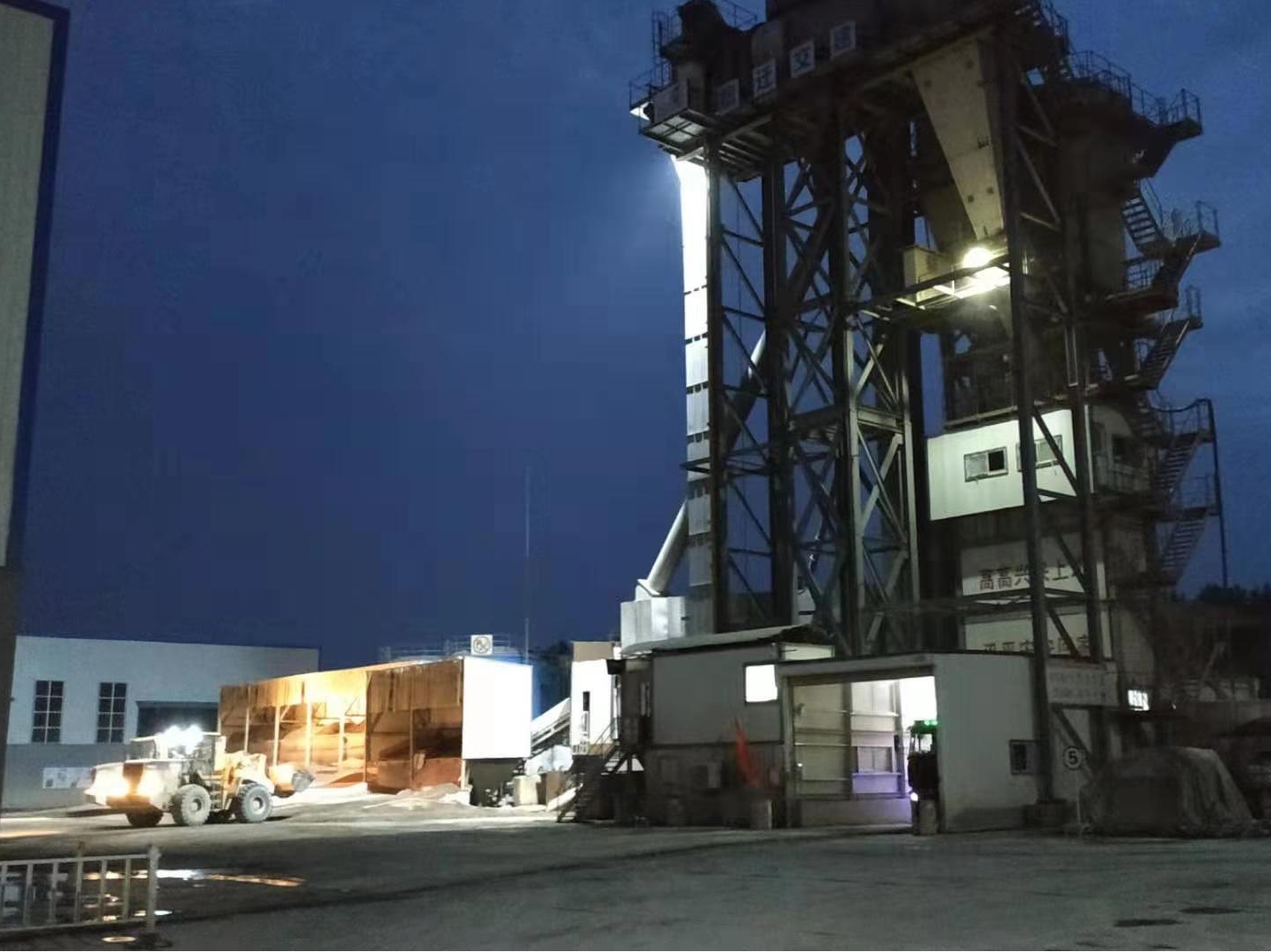 圖為正在進行夜間生產(chǎn)作業(yè)的瀝青拌和廠