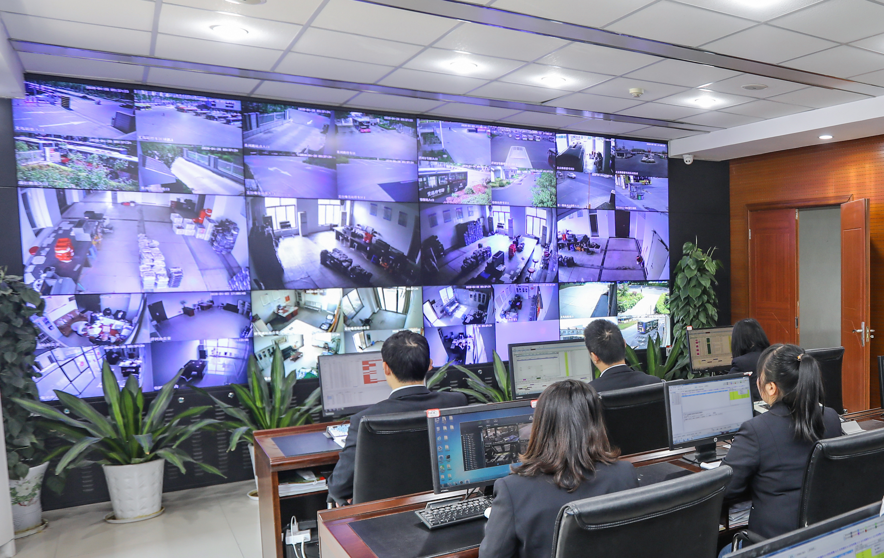 監(jiān)控中心工作人員正在智能調(diào)度、監(jiān)控車輛