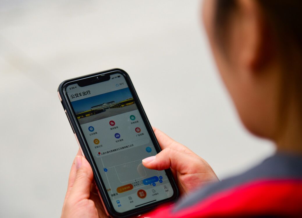 市民在查詢“公交E出行”APP