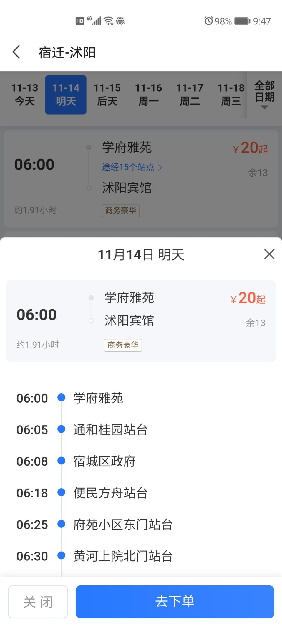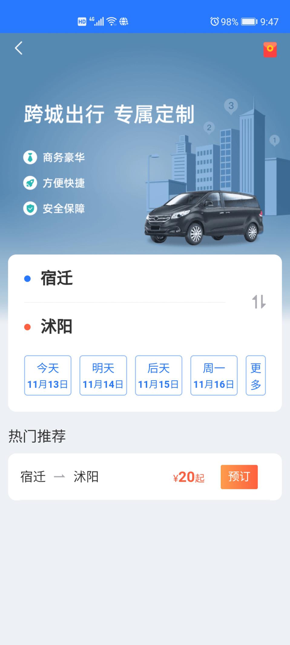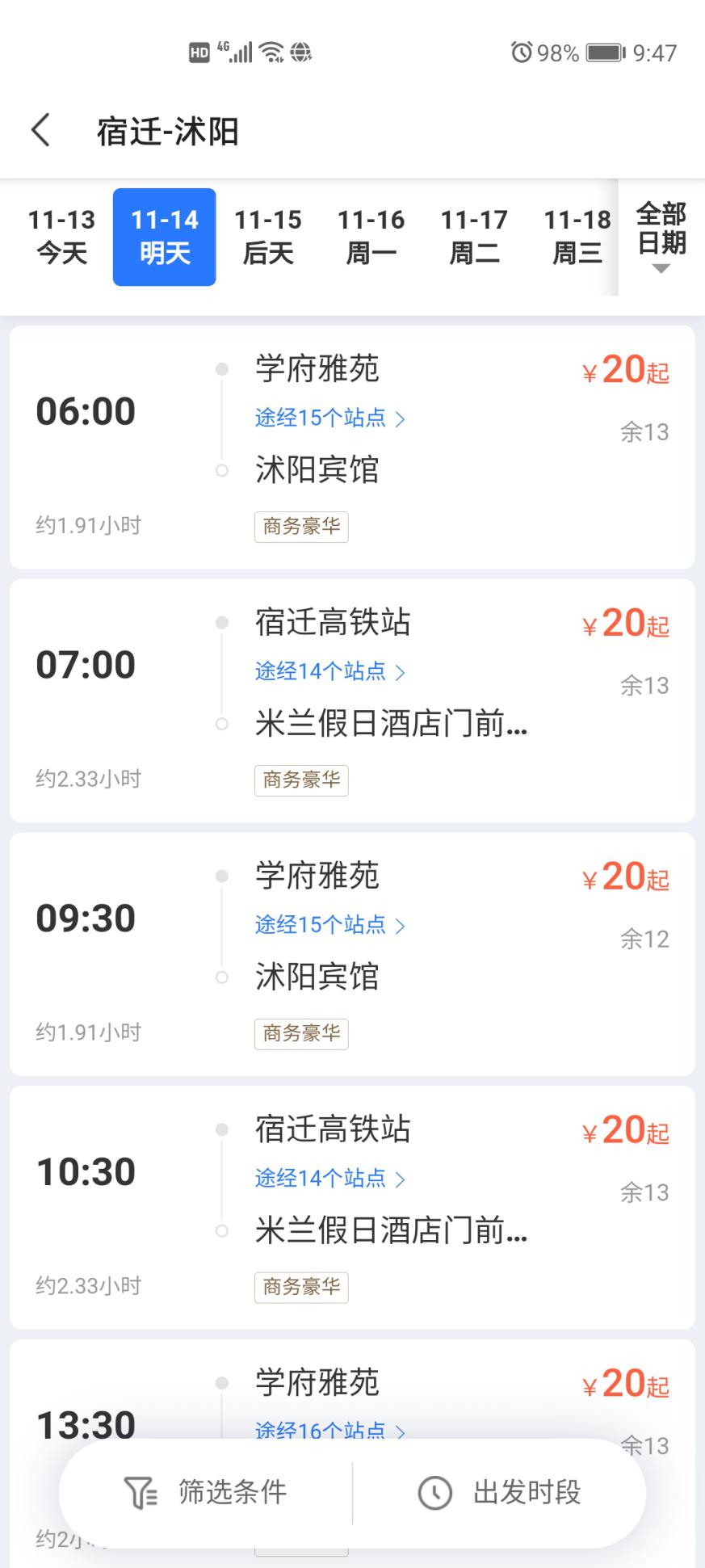 步驟二:選擇出發(fā)到達(dá)城市,例如:“宿遷-沭陽(yáng)”;