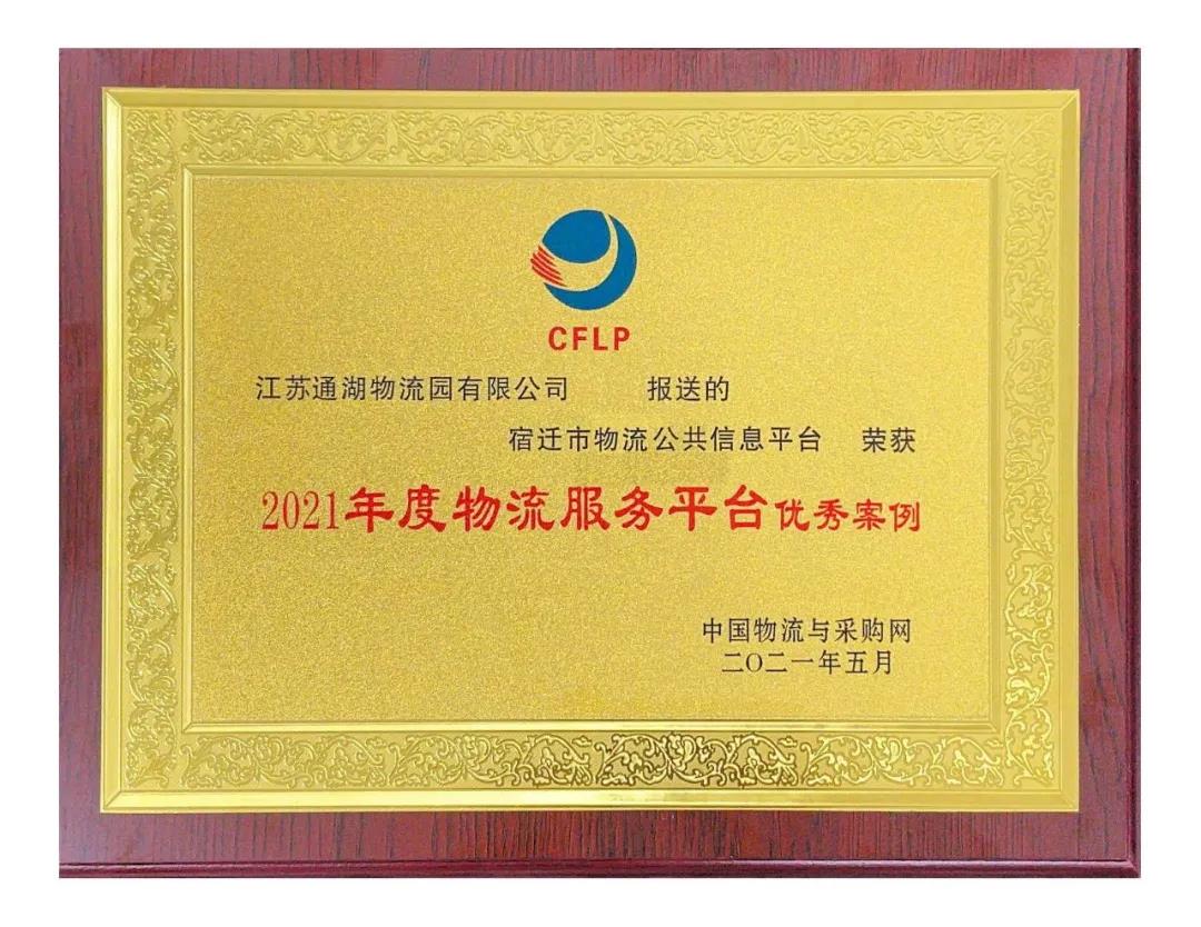 【通湖物流園】“宿遷市物流公共信息平臺”榮獲“2021年度物流服務平臺優(yōu)秀案例”稱號