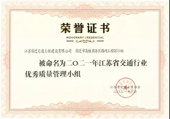 【宿遷交建】宿遷交建三項目榮獲“江蘇省交通行業(yè)優(yōu)秀質量管理小組”稱號