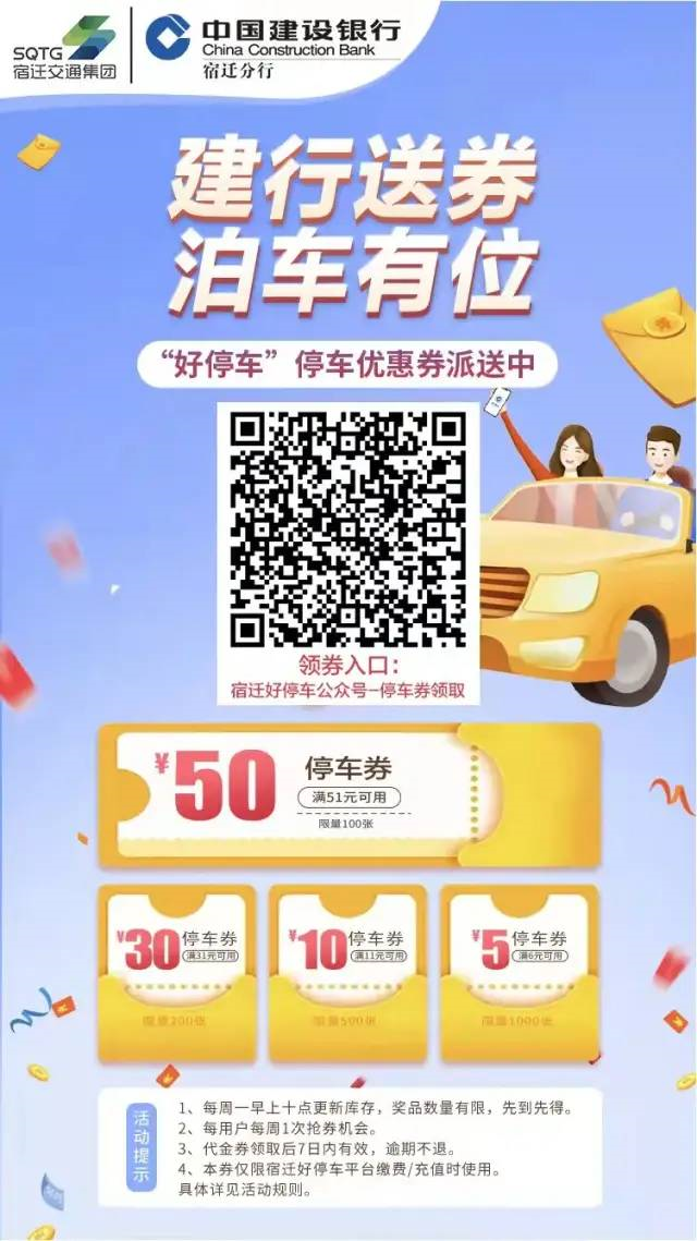 【停車場(chǎng)公司】停車福利券狂撒|建行送券,泊車有位