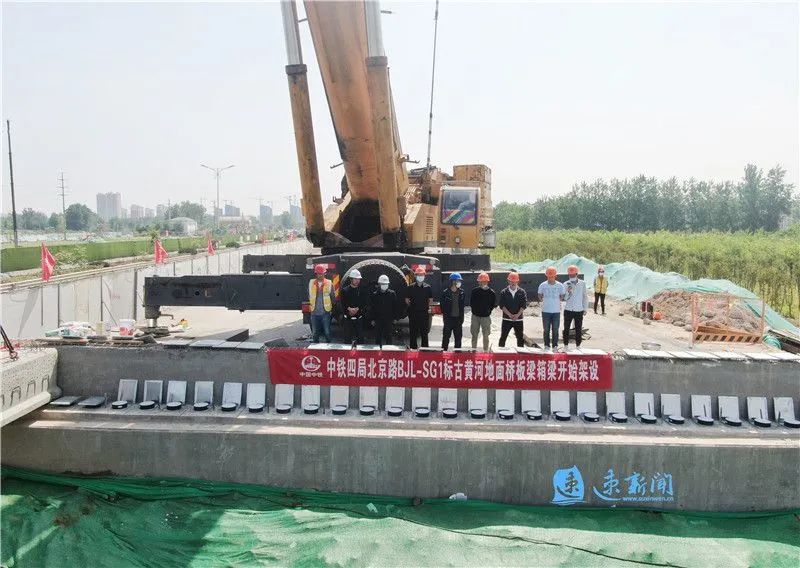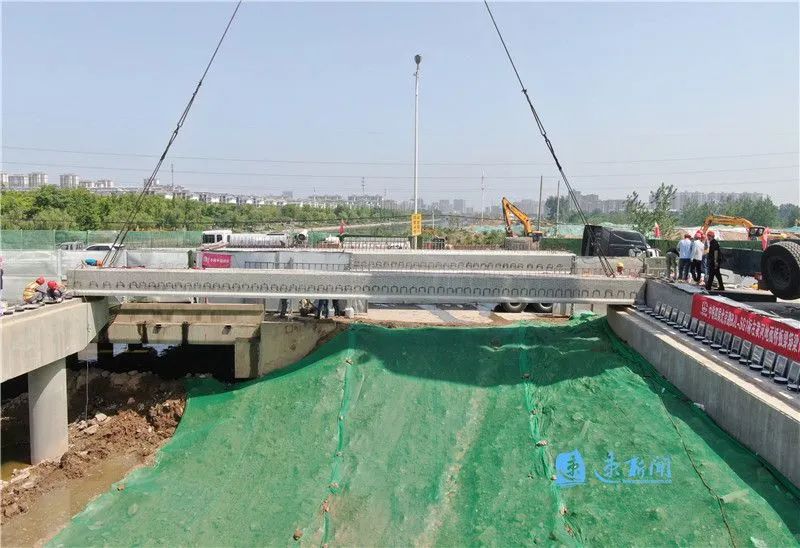 5月15日,北京路快速化改造工程1標段古黃河跨河橋梁成功完成首片板梁架設,拉開了北京路項目建設新序幕。
