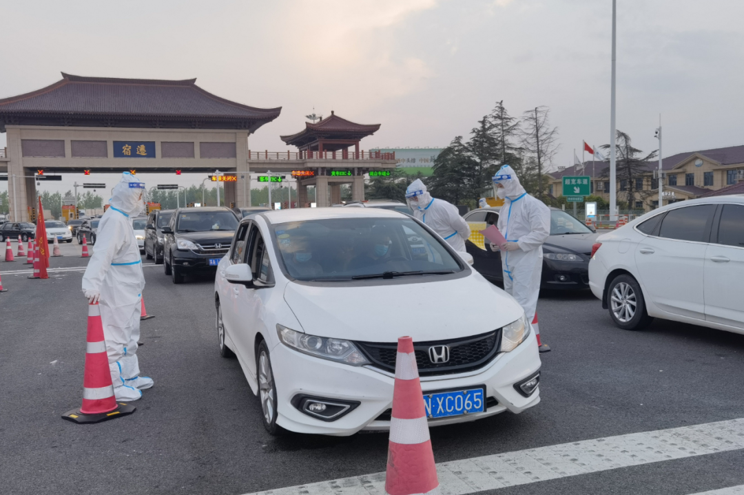 還記得那時,天剛亮,范金勝和李健便提前到達寧宿徐高速公路宿遷主線收費站,穿上防護服交接班后,便自覺站到指定崗位。八人一組的隊伍,各自都有明確的任務(wù)分工,每有一輛車駛?cè)氤稣究谶M入檢查區(qū)域,都會有相應(yīng)的防疫志愿者主動上前仔細篩查,發(fā)現(xiàn)高風(fēng)險地區(qū)來宿車輛便主動迎上去,檢查車上人員健康碼和行程碼,查驗48小時內(nèi)核酸檢測報告。