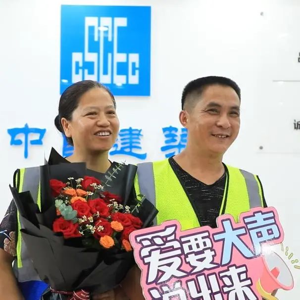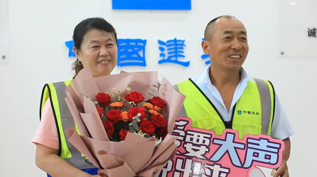電工組的徐青林今年50歲,常年和妻子黎倩在建筑工地打拼。“結(jié)婚這么多年,這真的是我第一次過七夕,在這里我也想對老婆說一句從來沒說過的肉麻話,老婆我愛你。”徐師傅羞澀地說。他的愛人更是飽含深情說道:“從認(rèn)識(shí)他結(jié)婚到現(xiàn)在,這是第一次收到他送的鮮花,我們倆在一起,就不用說什么苦累!有他就是家!”資料員張印權(quán)望著妻子曹莉認(rèn)真地說出了心里話,“老婆,感謝你愿意嫁給我,和我攜手共度余生……”