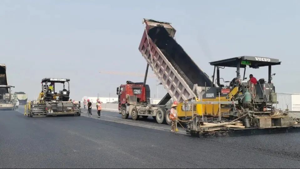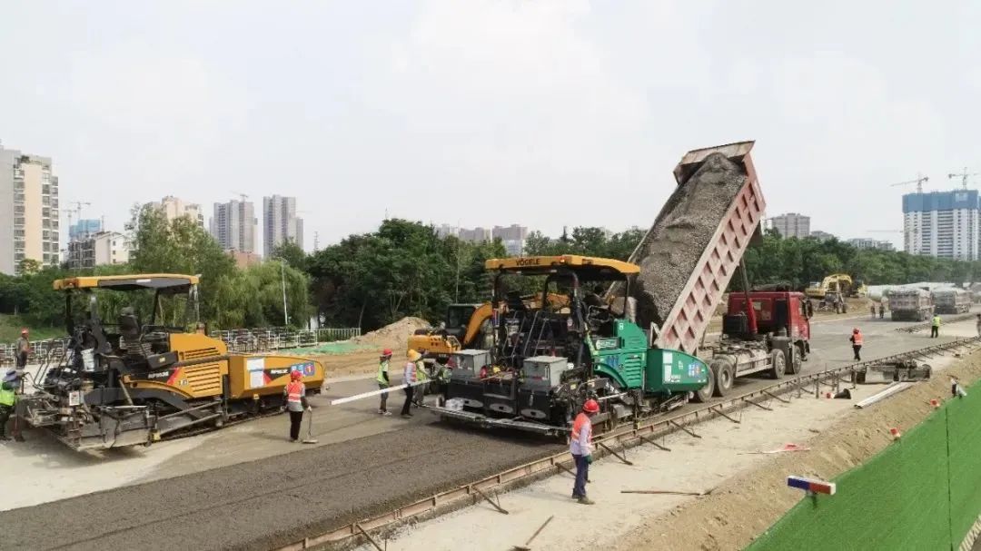 在北京路快速化改造工程2標(biāo)段施工現(xiàn)場(chǎng),建設(shè)者們頂著太陽(yáng),腳踩著瀝青路面,身后是翻滾著瀝青料的攤鋪機(jī),他們汗流浹背,在烈日下仍然以飽滿(mǎn)的熱情和良好的工作狀態(tài)投入到瀝青攤鋪工作中。