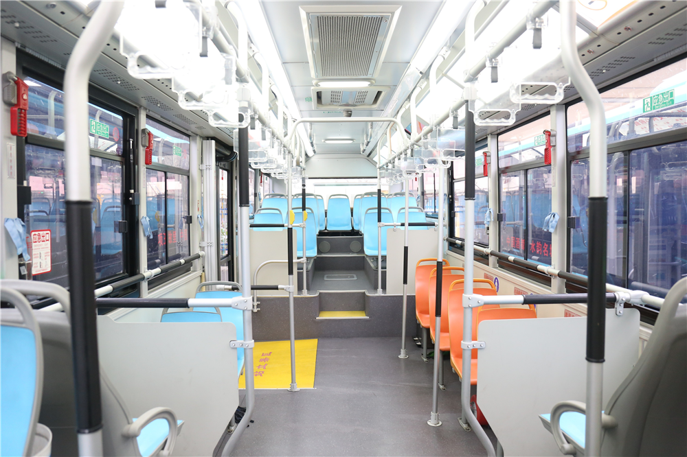 淺藍(lán)色和暖黃色的車身涂裝,超大前置車窗,緊湊的車廂布局,大方美觀的內(nèi)置燈箱宣傳畫面,完美詮釋了顏值即戰(zhàn)斗力。為提高乘客出行舒適度和滿意度,公交公司一手精心布置車廂內(nèi)飾,安裝向善向美、共享文明的公益廣告畫面,懸掛體現(xiàn)企業(yè)文化特色的裝飾掛件,張貼乘客須知公告和線路運(yùn)行地圖,營(yíng)造文明和諧美觀的公交車廂環(huán)境;一手科學(xué)制定新能源車輛分配方案,根據(jù)線路運(yùn)營(yíng)實(shí)際需求穩(wěn)步推進(jìn)新老車輛更替,及時(shí)增加運(yùn)營(yíng)車輛補(bǔ)充線路運(yùn)力,確保新采購(gòu)車輛用得了、用得好,讓公交形象美起來(lái)、活起來(lái),為公交品質(zhì)服務(wù)化好“靚麗妝”。
