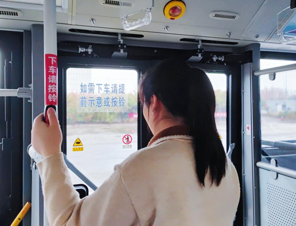 據(jù)公交公司營運部經(jīng)理朱翊介紹,這是公司2023年度“為民辦實事”項目之一——全面優(yōu)化“響應(yīng)式”停靠公交服務(wù)。所謂“響應(yīng)式”停靠,就是車輛到站前,需要下車的乘客提前按響下車鈴,駕駛員根據(jù)響鈴提示靠站停車,避免了乘客因示意不明顯或未做示意而錯過下車的不便與尷尬。目前,公交公司已為86條線路、1300余輛公交車增設(shè)提示標語,更新按鈴裝置。