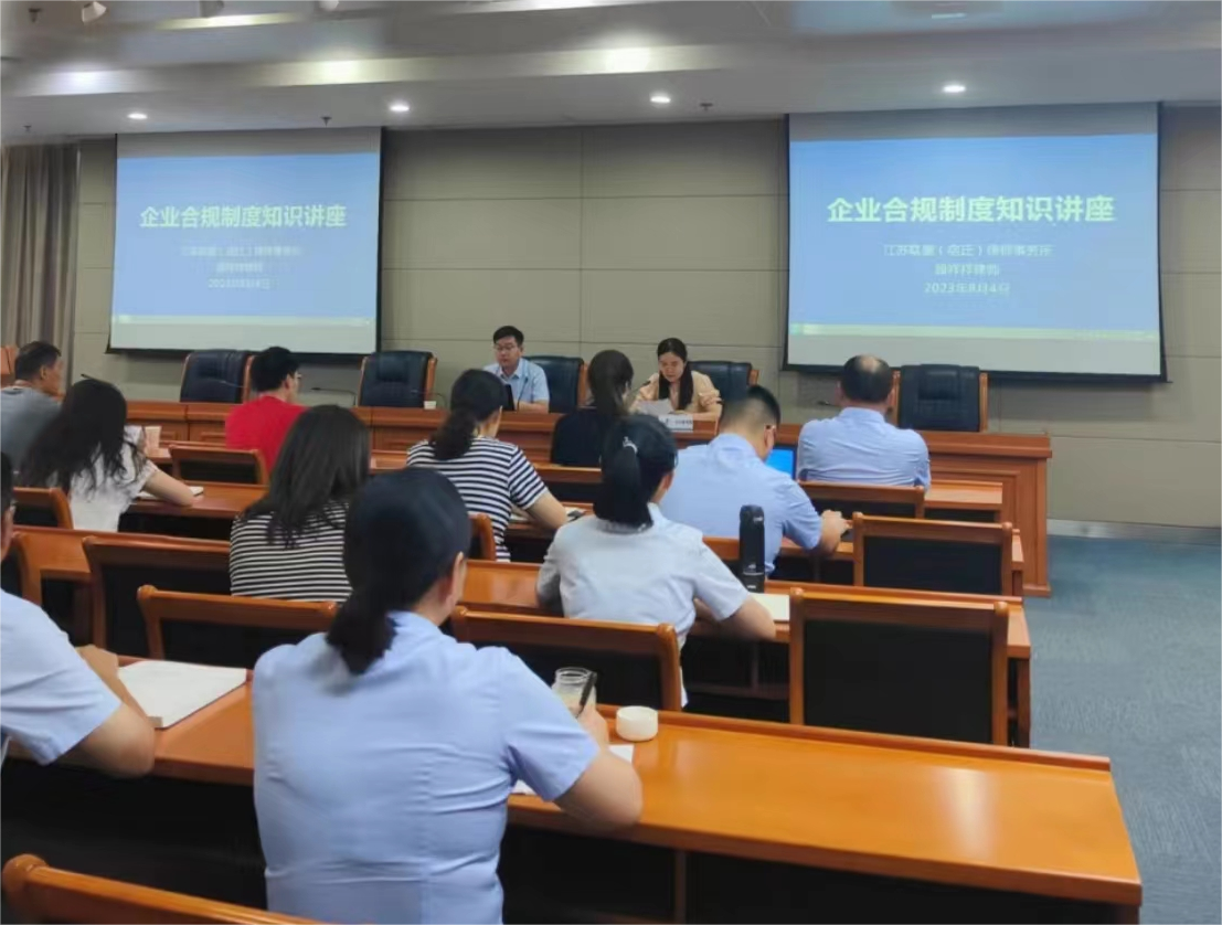 8月4日,宿遷交通集團(tuán)組織開展企業(yè)合規(guī)管理培訓(xùn),邀請江蘇聯(lián)盛(宿遷)律師事務(wù)所律師顧祥祥作專題講座,旨在進(jìn)一步強(qiáng)化風(fēng)險防范意識,提升職工合規(guī)管理及風(fēng)險分析研判能力。