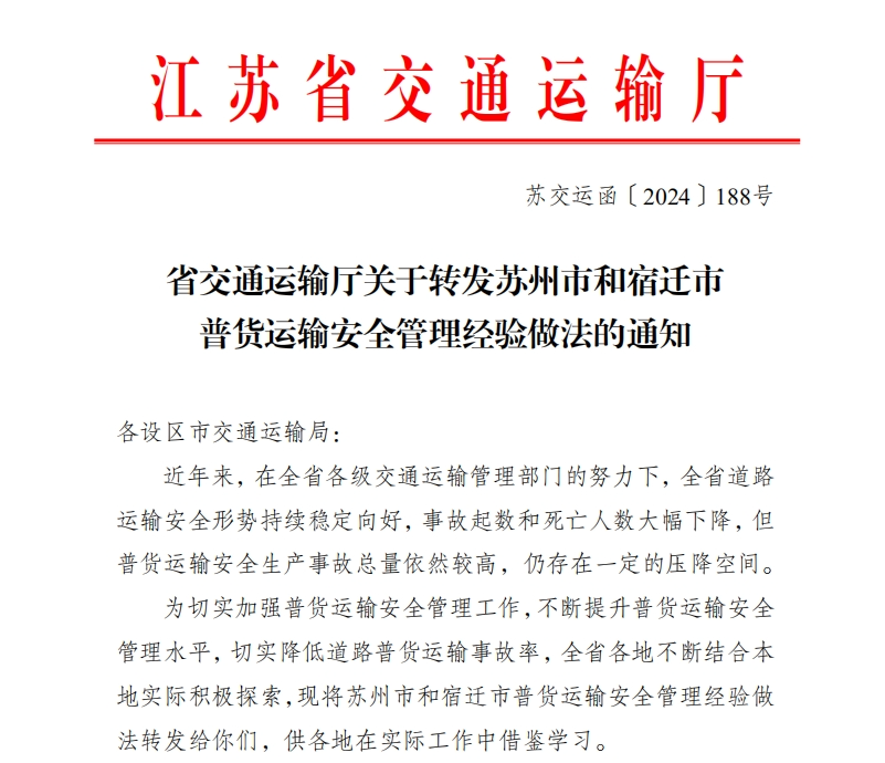 為切實(shí)加強(qiáng)普貨運(yùn)輸安全管理工作,不斷提升普貨運(yùn)輸安全管理水平,切實(shí)降低道路普貨運(yùn)輸事故率,近日,省交通運(yùn)輸廳將通湖物流園普貨運(yùn)輸安全管理經(jīng)驗(yàn)做法在全省范圍內(nèi)發(fā)文推廣,供各地在實(shí)際工作中借鑒學(xué)習(xí)。