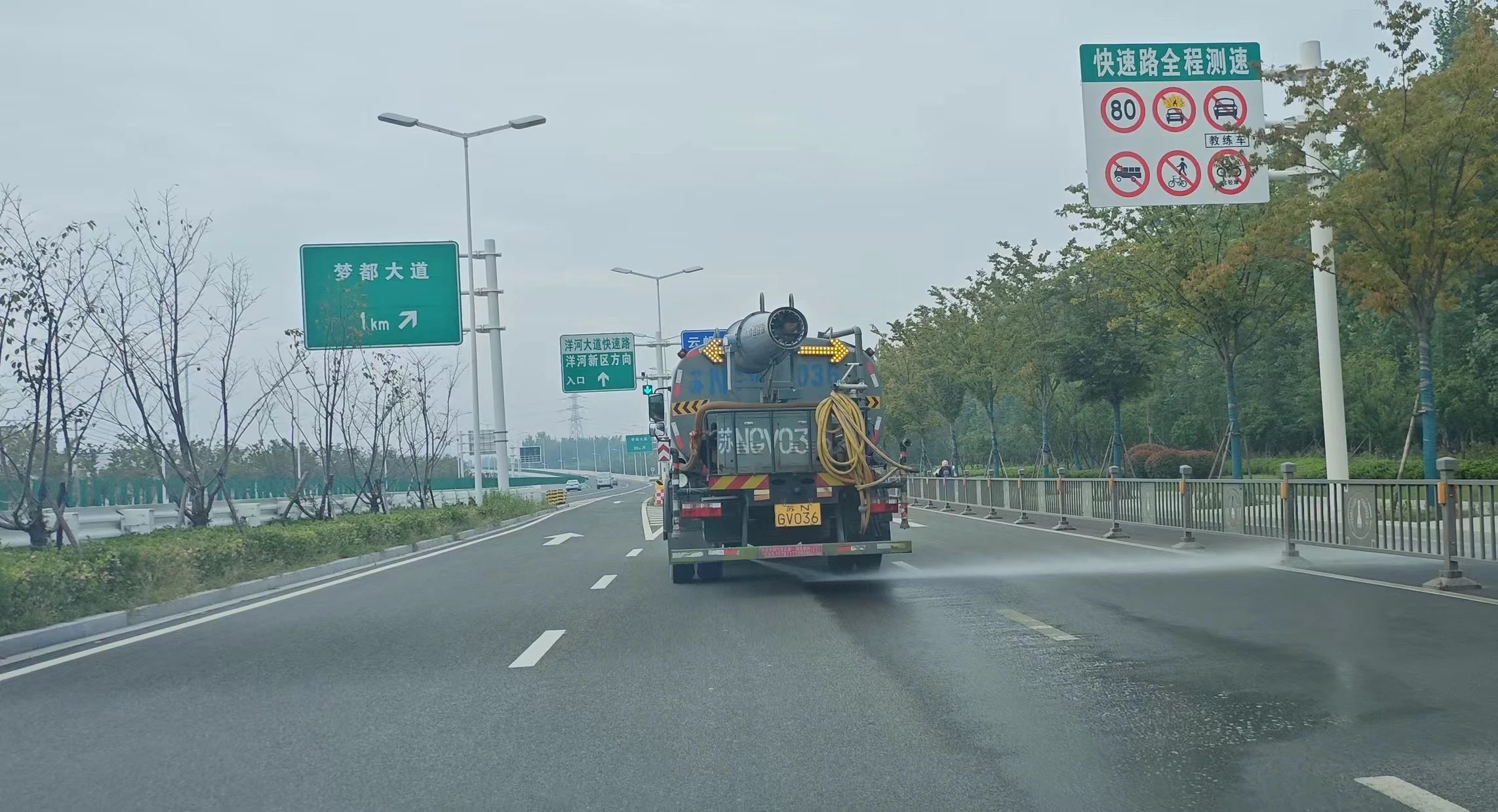 10月5日,伴隨著初升的朝陽,在宿遷交建養(yǎng)護(hù)管轄的迎賓大道快速路上,身穿橘紅色制服的養(yǎng)護(hù)人員已經(jīng)開始了日常道路養(yǎng)護(hù)保潔,撿拾綠化帶內(nèi)的白色垃圾、清除路面上的車輛拋撒物,工作忙碌而有序的開展著。