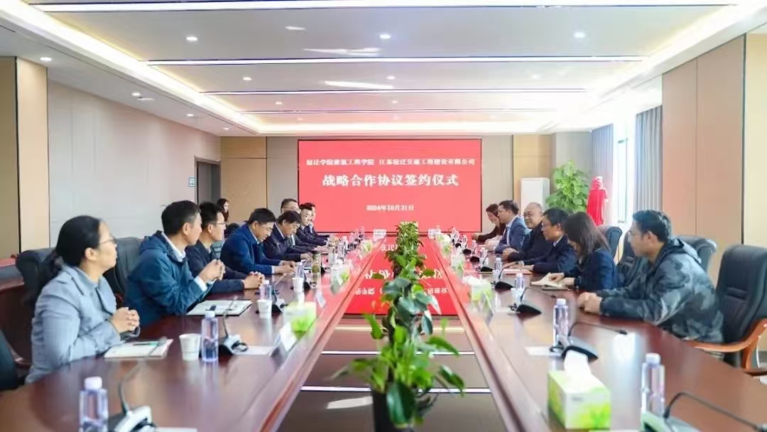 10月31日,宿遷交建與宿遷學(xué)院建筑工程學(xué)院簽署戰(zhàn)略合作協(xié)議,并舉行“交通基礎(chǔ)設(shè)施低碳材料與智能建造工程研究中心”揭牌儀式。學(xué)院黨委書記郭振宇、院長(zhǎng)朱方之,宿遷交通集團(tuán)副總經(jīng)理黃雪林出席活動(dòng)。