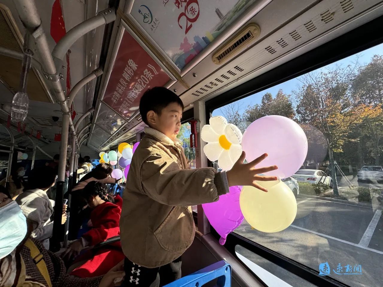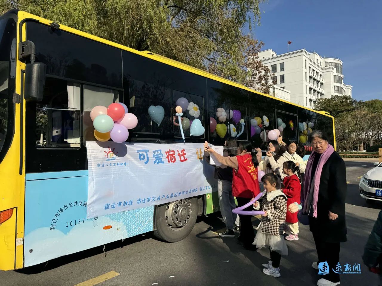 車(chē)窗被繽紛的氣球“占領(lǐng)”,車(chē)身貼著“可愛(ài)宿遷 讓愛(ài)童行”的標(biāo)語(yǔ)……11月23日下午,宿遷市人民大道群眾大廈的院子里停放了一輛兒童友好公交巴士,等待著孩子們用愛(ài)和童趣裝點(diǎn)它。