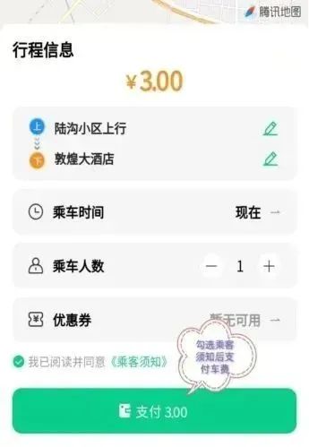“‘網(wǎng)約公交’運(yùn)營時間為上午7點(diǎn)至下午6點(diǎn),票價采用‘一票制’,3元/人次。我們鼓勵乘客進(jìn)行線上支付,先付后乘。需要注意的是,乘坐‘網(wǎng)約公交’的群眾是無法享受免費(fèi)乘車或刷卡優(yōu)惠等政策的。”