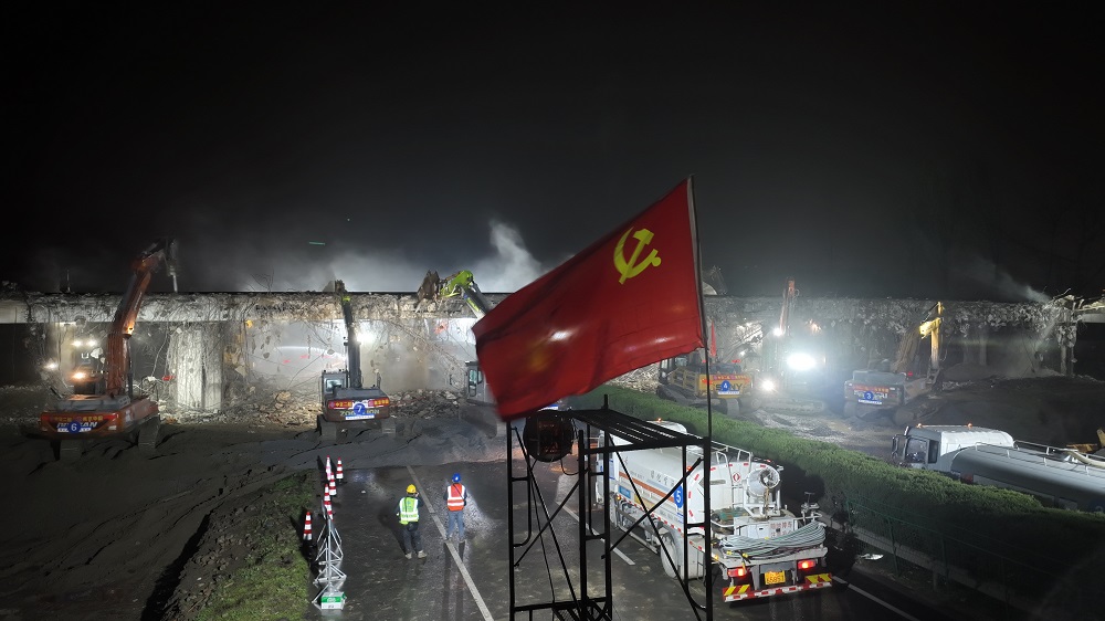 作為滬武高速改擴(kuò)建項(xiàng)目的控制性節(jié)點(diǎn),該匝道橋拆除面臨交通組織復(fù)雜、周邊環(huán)境敏感等多重挑戰(zhàn)。項(xiàng)目部通過科學(xué)制定施工方案,積極協(xié)調(diào)交管部門及地方政府,并提前做好周邊居民溝通工作,確保施工安全有序推進(jìn)。施工期間,黨員先鋒隊(duì)全程駐守現(xiàn)場,強(qiáng)化安全與質(zhì)量管控。