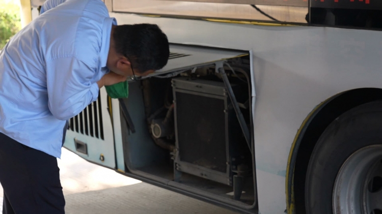近日,一位市民發(fā)帖點(diǎn)贊我市901路公交駕駛員,稱在高溫天氣里乘坐公交車就像進(jìn)入“移動(dòng)空調(diào)房”,不僅車內(nèi)涼爽宜人,駕駛員還貼心地拉好了所有窗簾。帖子內(nèi)容引發(fā)了不少市民的共鳴,這份清涼體驗(yàn)的背后,是公交駕駛員們細(xì)致入微的服務(wù)。近日,在宿遷市區(qū)雪楓公園公交樞紐站,901路公交駕駛員夏端兵到崗后,第一時(shí)間仔細(xì)檢查輪胎、制動(dòng)系統(tǒng)等安全部件。隨后,便開始為乘客打造清涼空間。