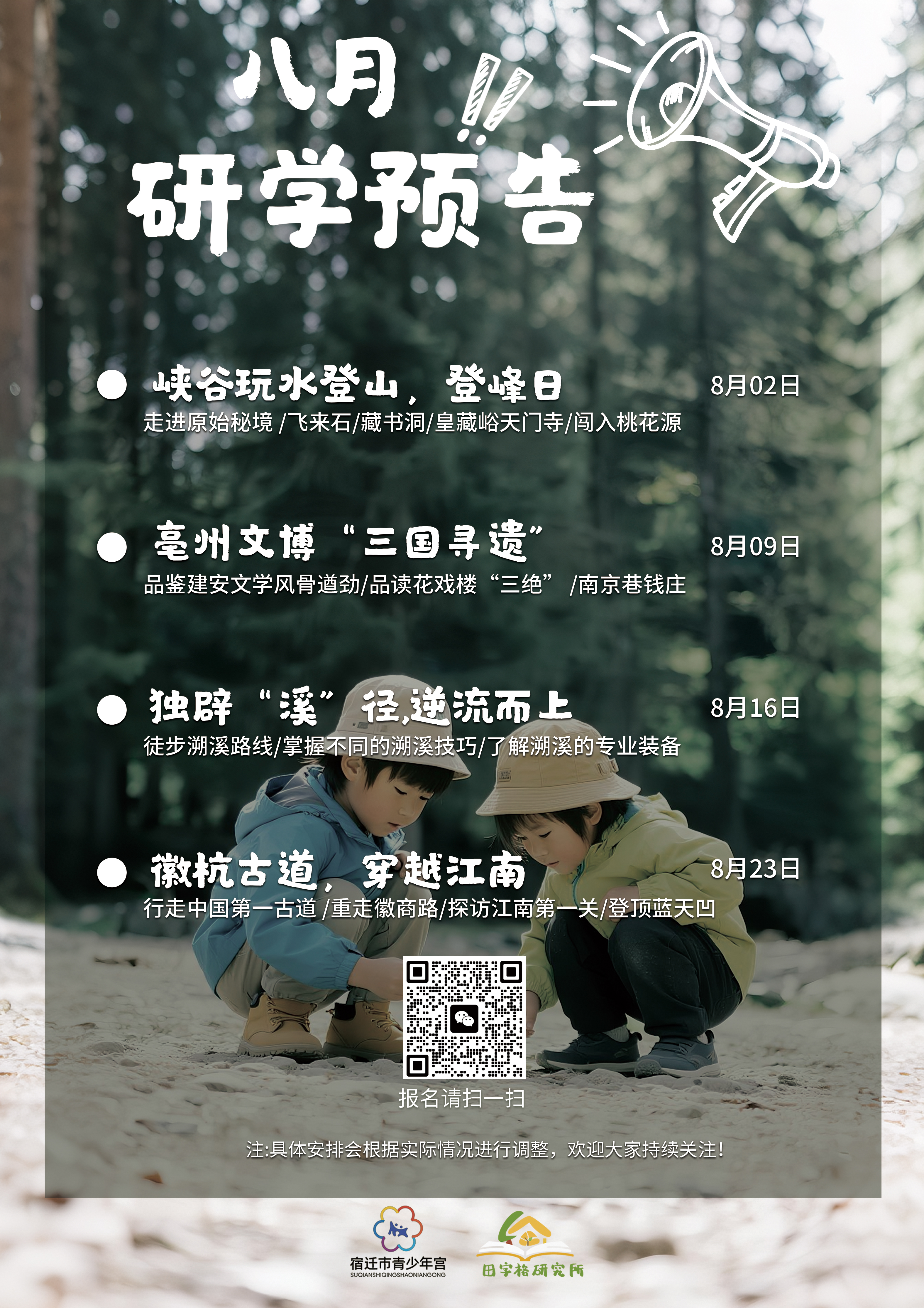 掃描下方二維碼,鎖定“峽谷登峰”名額!這個夏天,讓孩子在皇藏峪的山林里認識自然,在溪水中釋放快樂,在登高中收獲勇氣。
