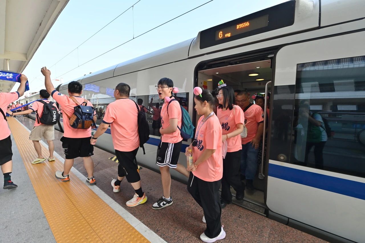 8月3日下午5點(diǎn)10分左右,載有700余名無錫球迷的D9556次專列抵達(dá)高鐵宿遷站。