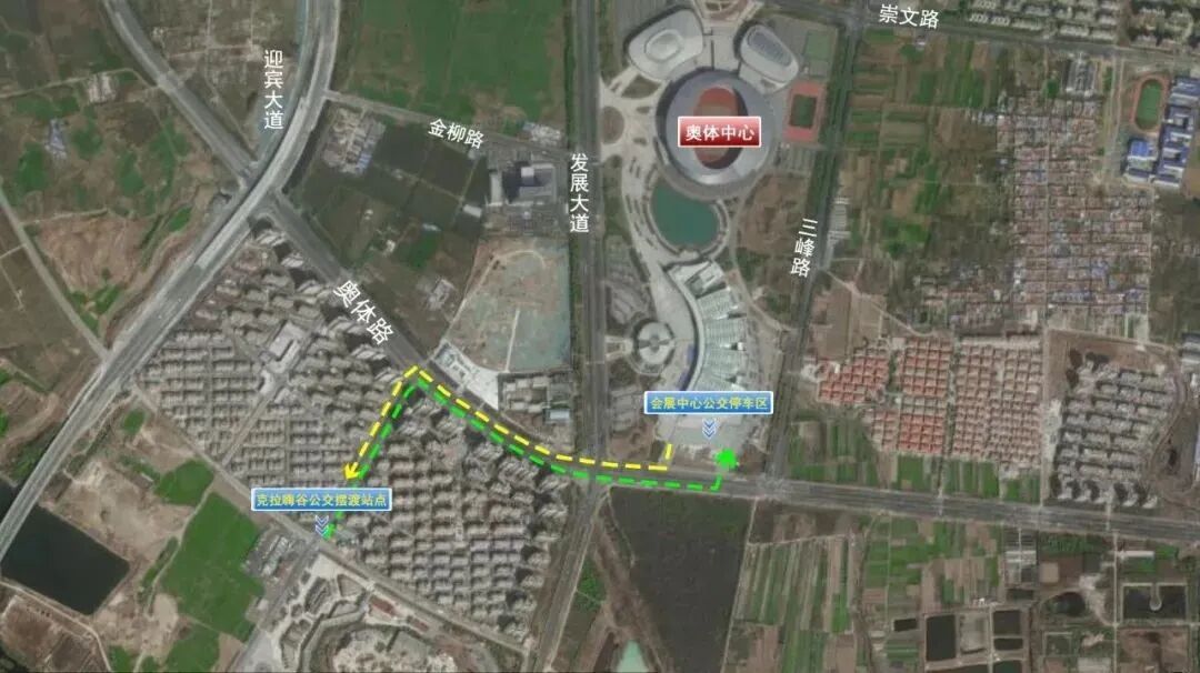 具體線路:發(fā)展大道--奧體路--會展中心(奧萊廣場)