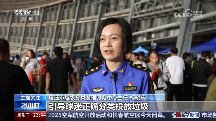 9月23日,中央廣播電視總臺(tái)《24小時(shí)》欄目關(guān)注我市在舉辦“蘇超”等體育賽事中的綠色創(chuàng)新實(shí)踐,“人走場(chǎng)凈”讓綠色低碳理念落地見(jiàn)效。