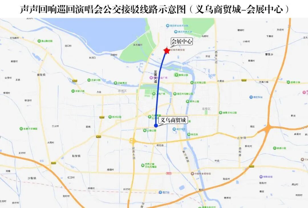 具體線路:江山大道——項(xiàng)王路——黃河路——三臺山大道——奧體路——會展中心(奧萊廣場)