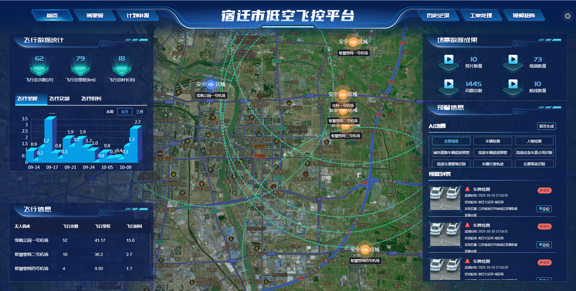 完成無人機飛控平臺、低空飛行服務平臺部署,實現(xiàn)了空域申報、航線規(guī)劃、動態(tài)監(jiān)管“一網(wǎng)通辦”。