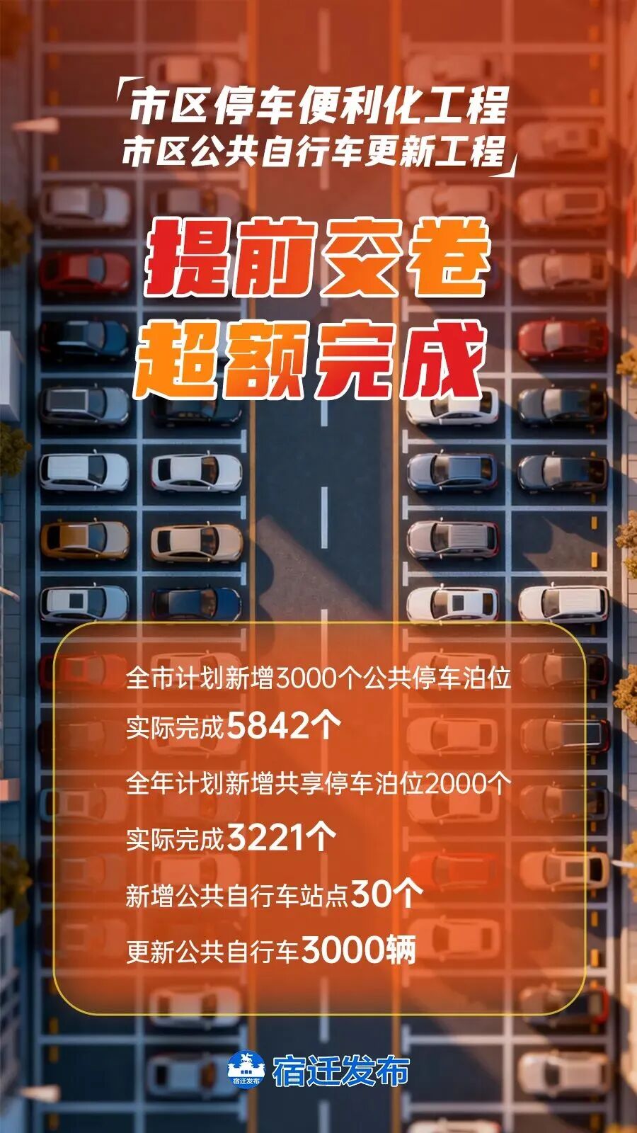 ·泗洪縣成為“黑馬”,計(jì)劃新增公共停車泊位300個(gè),實(shí)際完成1194個(gè),僅泗州吾悅廣場(chǎng)一處就貢獻(xiàn)了1099個(gè)公共停車泊位。