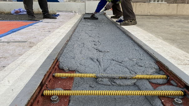 該工法通過創(chuàng)新無縫伸縮縫結(jié)構(gòu)設(shè)計(jì),融合新型材料應(yīng)用與專用施工設(shè)備,形成了一整套高效精準(zhǔn)、便捷可靠的施工技術(shù)解決方案。相較于傳統(tǒng)無縫伸縮縫施工方法,該工法可實(shí)現(xiàn)160mm伸縮量級橋梁的無縫化處理,行車噪聲降低8-10dB,全生命周期工程造價(jià)減少30%。
