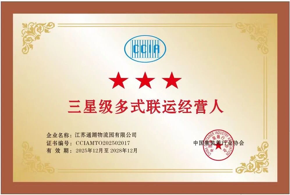 【通湖物流園】江蘇通湖物流園有限公司獲評(píng)三星級(jí)多式聯(lián)運(yùn)經(jīng)營(yíng)人