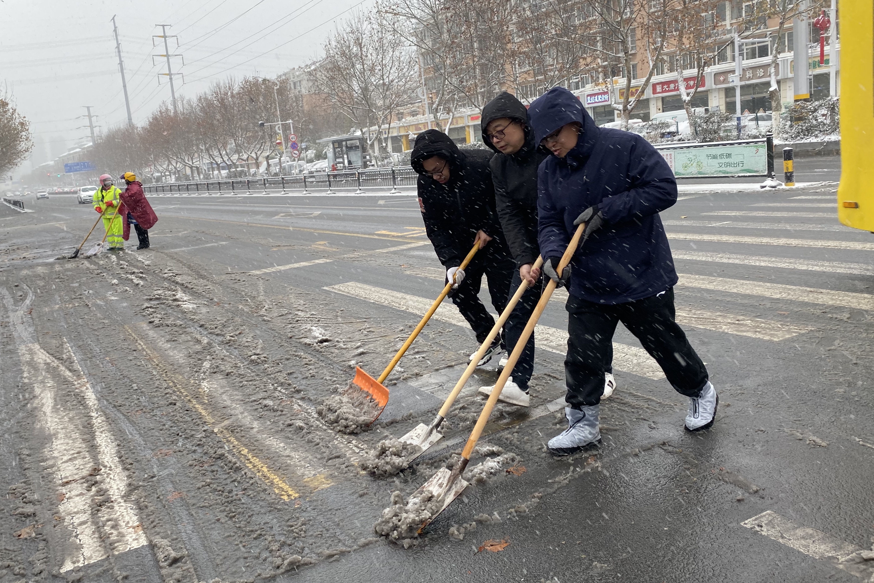 12月29日下午,集團(tuán)公司根據(jù)市政府辦統(tǒng)一安排部署,積極組織黨員志愿者赴青海湖路(平安大道-世紀(jì)大道)段開展清雪工作。過(guò)程中,大家分工合作,拿著鐵鍬、推雪鏟等工具清掃路面積雪。通過(guò)近兩個(gè)多小時(shí)的奮戰(zhàn),責(zé)任區(qū)域路段內(nèi)積雪積冰陸續(xù)被清理完畢,有效保障市民出行平安順暢。