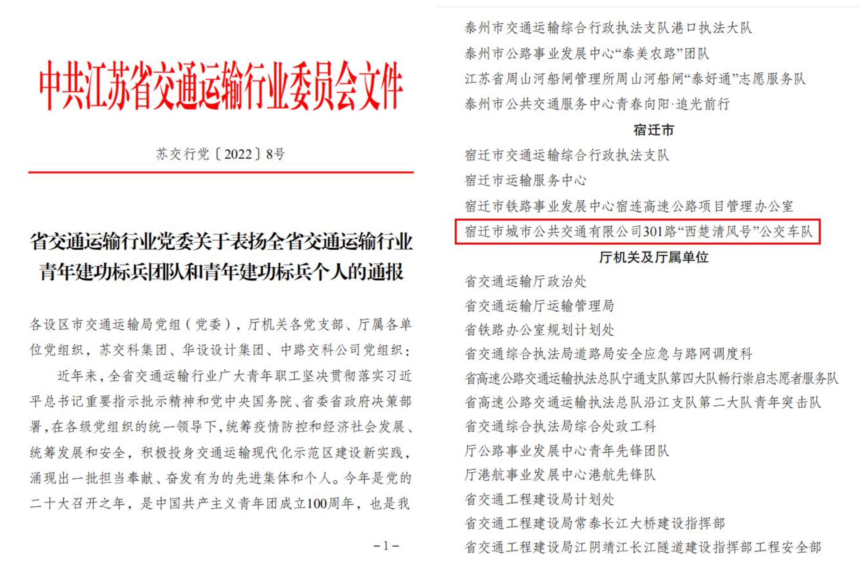 【“出彩宿遷公交人”系列報(bào)道③】全省交通運(yùn)輸行業(yè)青年建功標(biāo)兵團(tuán)隊(duì)——301路“西楚清風(fēng)號(hào)”公交車隊(duì)