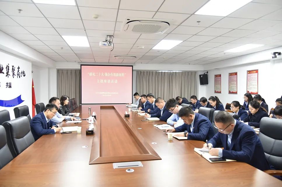 活動中,廣大干部職工共同學習了黨的二十大報告精神。隨后,開展主題座談交流會。公司中層干部、黨員、基層職工結合自身工作職責,圍繞制度建設、業(yè)務流程、對標一流、改革發(fā)展、園區(qū)管理等方面提出了各自的見解。會議要求,全體黨員干部職工要把學習宣傳貫徹黨的二十大精神作為當前和今后一個時期的重要政治任務,提高站位、擴大格局、深思細悟、立足崗位,以更加飽滿的工作熱情和奮發(fā)有為的精神狀態(tài)投入到企業(yè)發(fā)展中去。