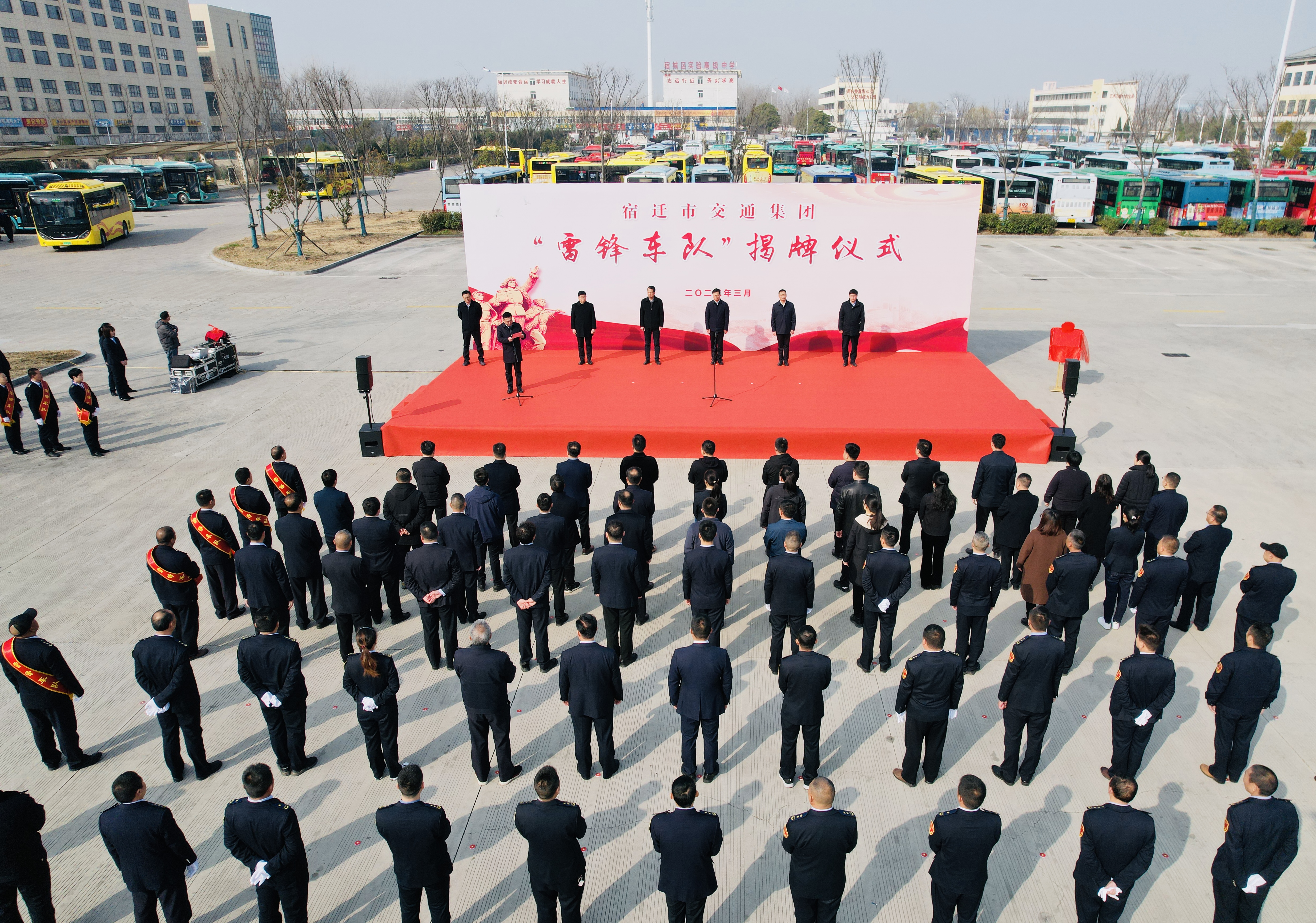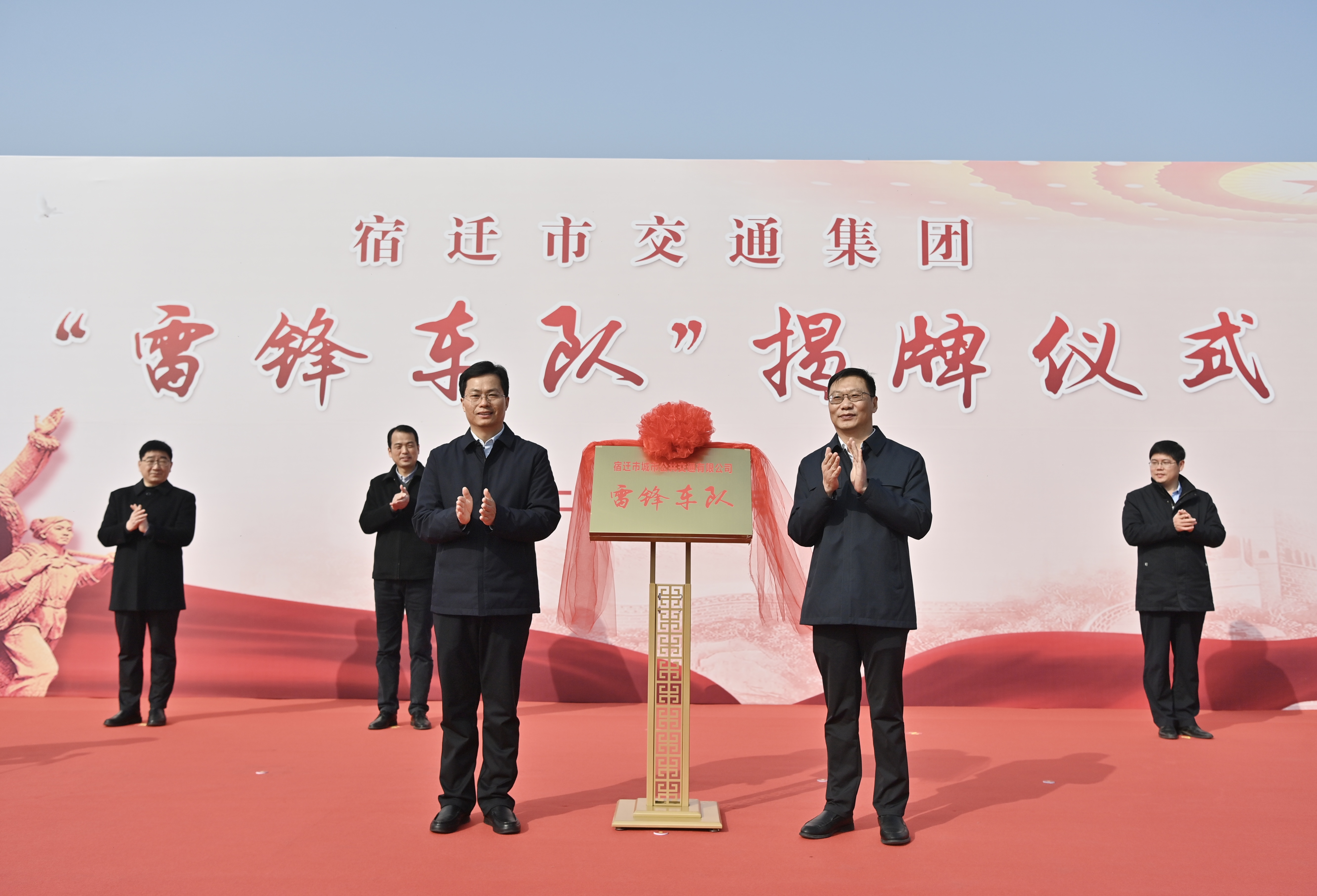 3月4日上午,宿遷交通集團(tuán)舉行“雷鋒車隊(duì)”揭牌儀式,標(biāo)志著宿遷公交K202路“雷鋒車隊(duì)”正式上線。市委宣傳部副部長(zhǎng)、市文明辦主任陳夫生,宿遷交通集團(tuán)黨委書(shū)記、副董事長(zhǎng)邵巖出席儀式并共同揭牌。