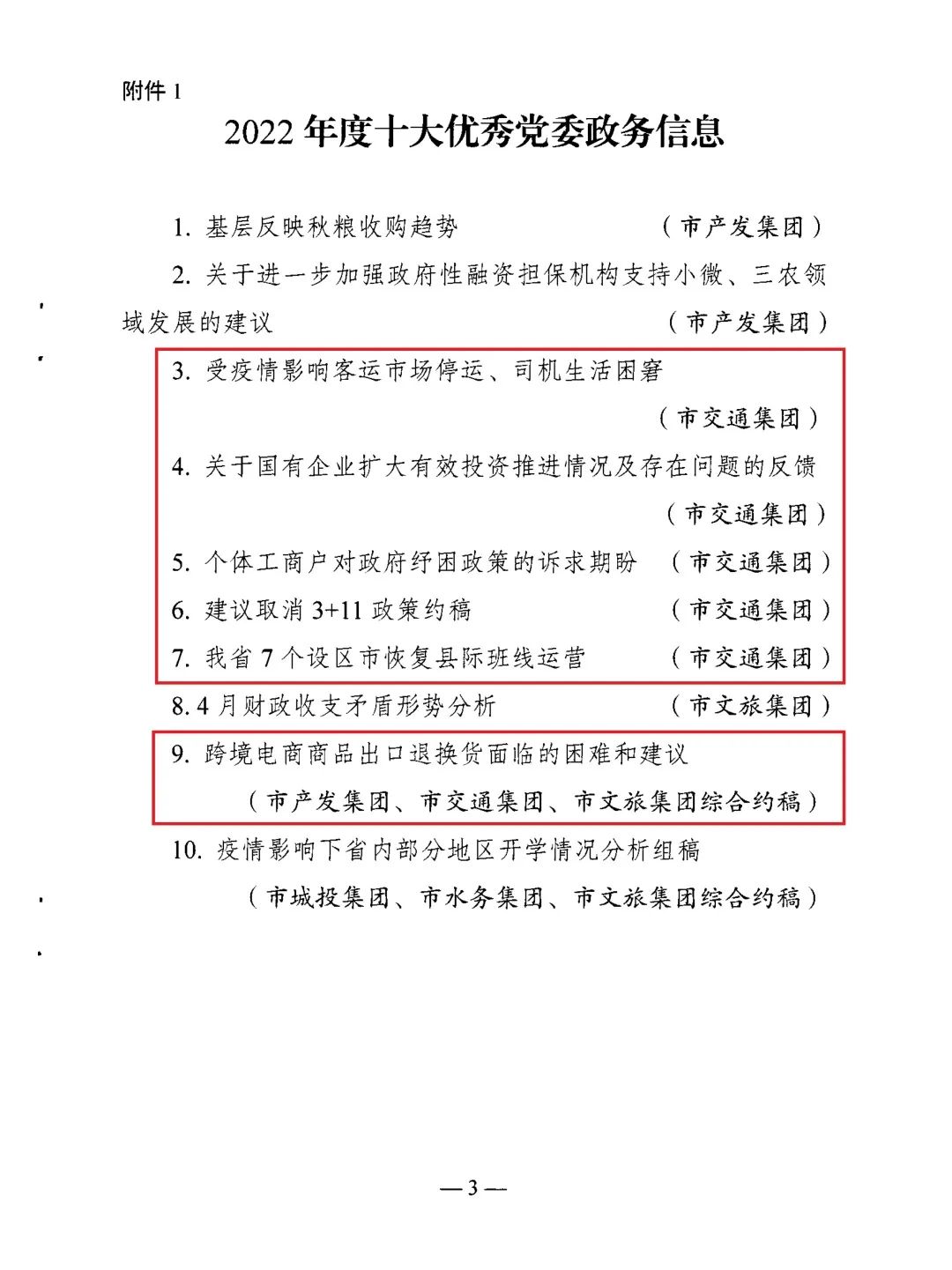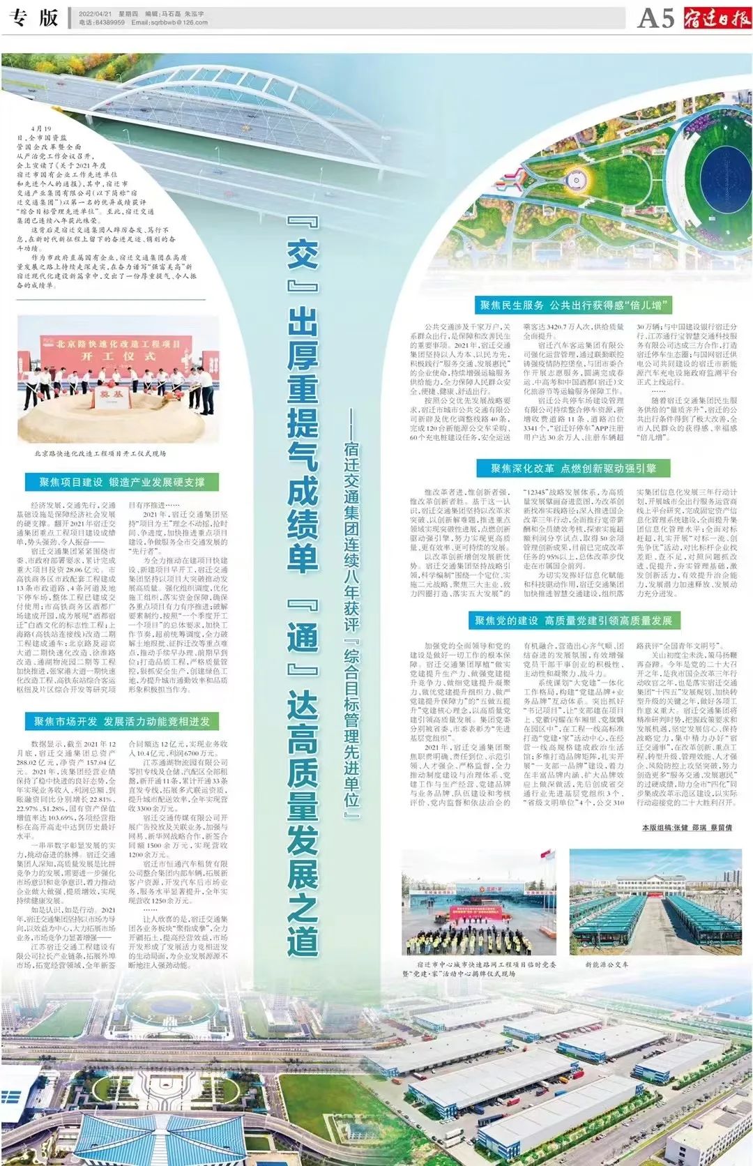 近日,從市屬國資系統(tǒng)信息宣傳調(diào)研工作會議上獲悉,宿遷交通集團報送的《關于國有企業(yè)擴大有效投資推進情況及存在問題的反饋》《建議取消3+11政策的約稿》等6篇黨委政務信息獲評2022年度十大優(yōu)秀黨委政務信息;《宿遷交通集團:大道坦途闊步行 筑夢揚帆新征程》《又一高架貫通,今后宿遷中心城區(qū)快速路網(wǎng)將更便利》等3篇宣傳報道獲評2022年度十大優(yōu)秀國企改革宣傳;《全市快速路網(wǎng)規(guī)劃建設情況調(diào)研報告》獲評2022年度十大優(yōu)秀國資政策研究。
