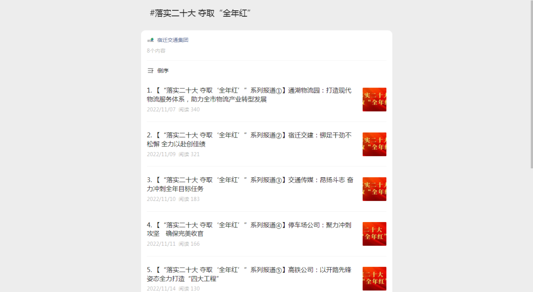 ?聚焦重大主題宣傳。以學習宣傳貫徹黨的二十大精神為主線,在網(wǎng)站、公眾號設立專欄,推出“貫徹二十大精神 推動高質(zhì)量發(fā)展”“落實二十大 奪取‘全年紅’”系列報道,全面展現(xiàn)黨的二十大精神在集團落地生根、開花結(jié)果的有力舉措。