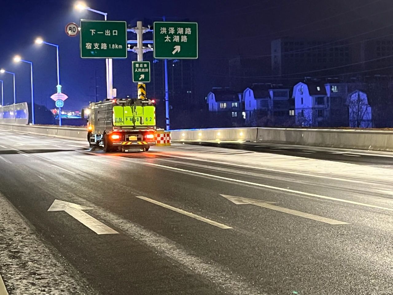 高鐵公司立即啟動(dòng)應(yīng)急預(yù)案,組織養(yǎng)護(hù)單位迅速至北京路、迎賓大道二期、洋河大道、上海路等路段開展融雪除冰工作;同時(shí),聯(lián)合市公安局鐵騎大隊(duì)互動(dòng)巡查,確保道路安全暢通。宿遷交建道路養(yǎng)護(hù)黨員突擊隊(duì)第一時(shí)間上路,通過撒布融雪劑、融雪鹽和擺放防滑料,及時(shí)破除清掃結(jié)冰、積雪路段。