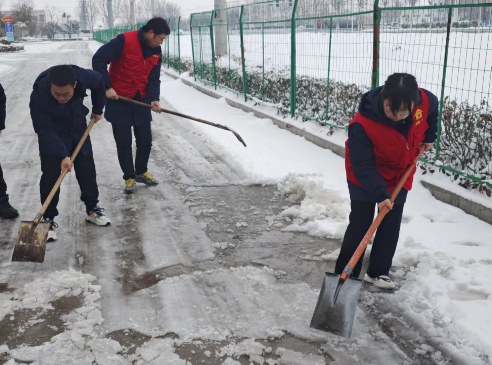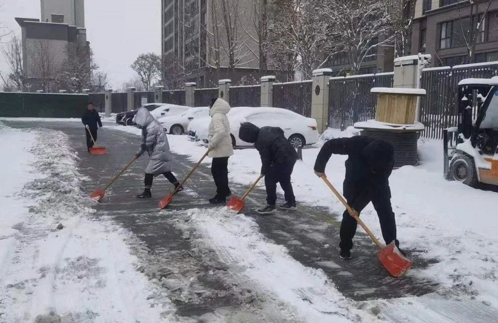通湖物流園現(xiàn)場(chǎng)管理人員、物業(yè)管理處全員在崗作業(yè),對(duì)園區(qū)各主干道積雪進(jìn)行清理,保障園區(qū)內(nèi)道路通暢、工作正常運(yùn)行,減少路面結(jié)冰對(duì)日常作業(yè)影響。