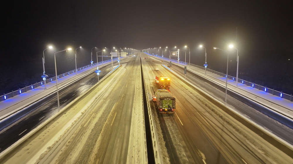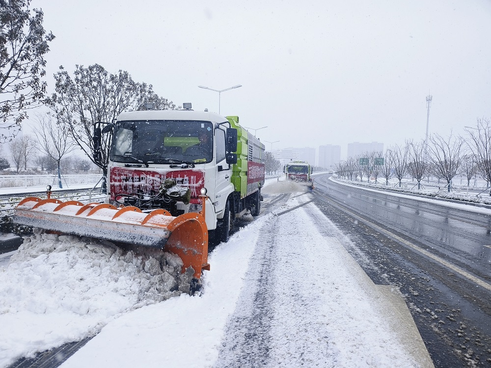 宿遷交建迅速啟動(dòng)應(yīng)急預(yù)案,快速出動(dòng)應(yīng)急養(yǎng)護(hù)人員200余人和雪鏟車(chē)3輛、滾雪車(chē)2輛、裝載機(jī)30輛、融雪劑灑布車(chē)3輛、托運(yùn)物資車(chē)輛18輛、巡查車(chē)13輛,投入融雪物資300噸,對(duì)所養(yǎng)護(hù)路段全面開(kāi)展除冰融雪作業(yè)。