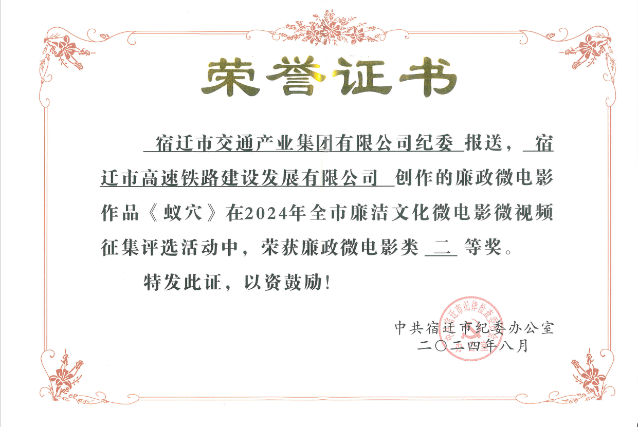 宿遷交通集團(tuán)影片《蟻穴》榮獲全市廉政微電影二等獎(jiǎng)