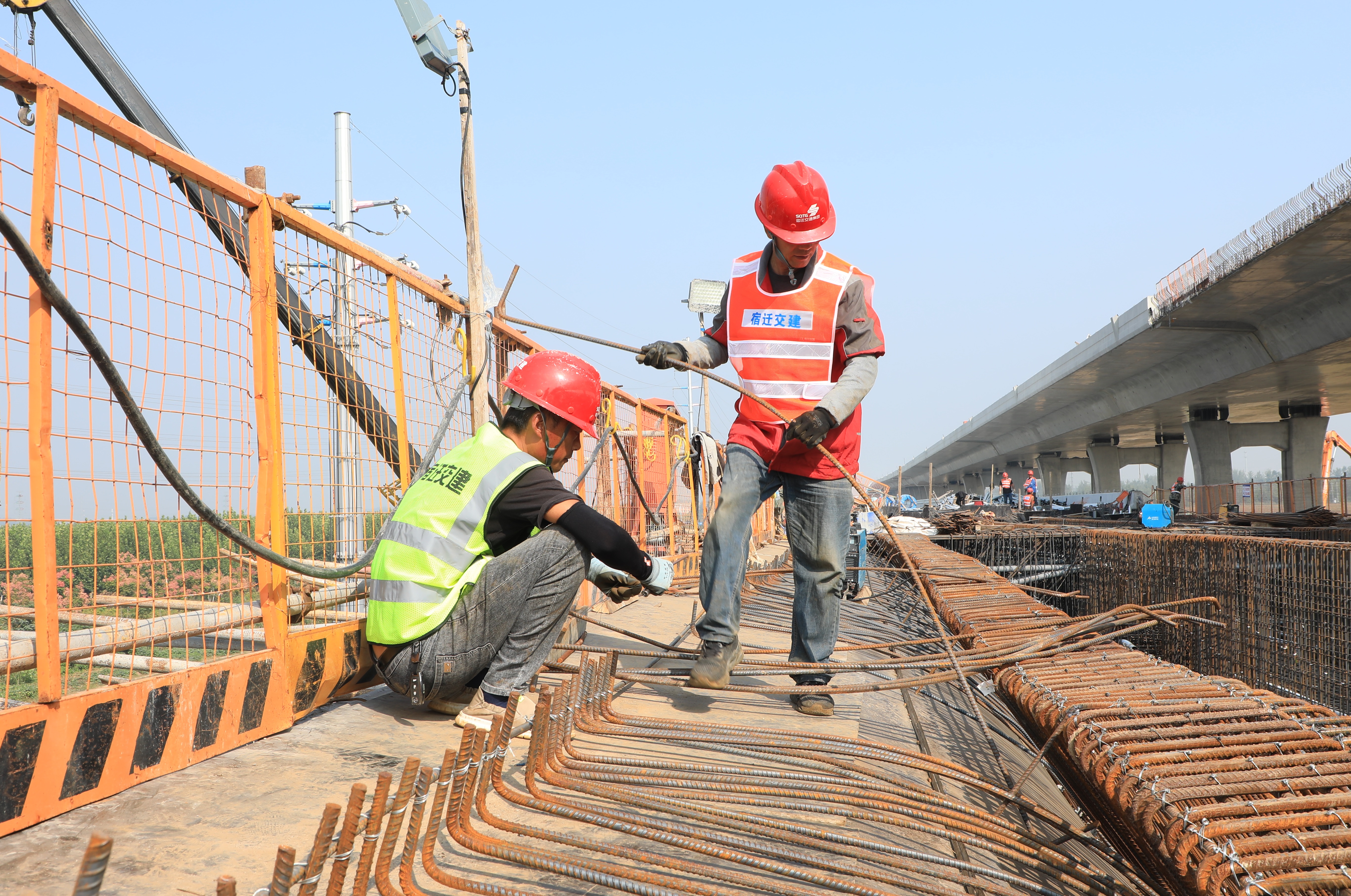 11月7日,在酒都路快速化改造工程施工現(xiàn)場,工人們正分工協(xié)作進行鋼筋綁扎作業(yè),爭分奪秒趕進度。