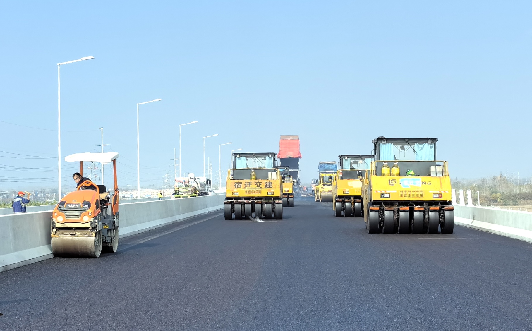 11月11日,酒都路快速化改造工程3標段開始瀝青鋪設,現(xiàn)場4臺攤鋪機、4臺鋼輪壓路機、4臺膠輪壓路機輪番上陣,全力以赴攻堅年度目標任務。