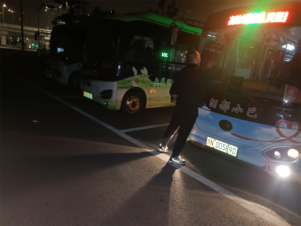 在仔細(xì)確認(rèn)了車(chē)輛的安全性能后,又細(xì)心地擦干凈車(chē)窗上的水霧,早上6:00,葉敬濤穩(wěn)穩(wěn)將車(chē)停在高鐵宿遷站公交發(fā)車(chē)區(qū),等待著第一批乘客。